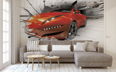 Фотообои «Скорость и роскошь» с оранжевой машиной воплощают в себе изысканность и мощь спортивного автомобиля, отражая его элегантные линии и динамичность.