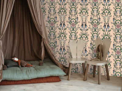 Погрузите ребёнка в мир гармонии и волшебства! Эти фотообои сочетают изящную симметрию узоров, милых зверят и бутоны цветов на бордовом фоне. Каждая деталь словно оживает, создавая уютную и игривую атмосферу в детской комнате. Идеальный фон для развития фантазии, где каждый день рождаются новые истории о дружбе с природой. Экологичные материалы и сочные краски подарят радость и безопасность вашему малышу.