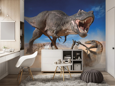 Погрузите ребенка в мир удивительных приключений с фотообоями «Тираннозавр». На фоне загадочной пустыни юрского периода гордо шествует могучий тираннозавр, а вокруг него — стайка любознательных динозавров, готовых к новым открытиям. Яркие краски, динамичные детали и реалистичные текстуры создадут в детской комнате атмосферу волшебства и пробудят интерес к древним обитателям Земли.