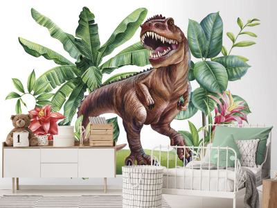 Погрузите ребёнка в мир доисторических чудес с фотообоями «Тираннозавр Рекс: Тропическое приключение»! Яркий тираннозавр, окружённый сочной зеленью, экзотическими цветами и таинственными камнями, создаст атмосферу захватывающих открытий и волшебных фантазий. Идеально для комнаты юного исследователя, который обожает динозавров и мечтает о приключениях!