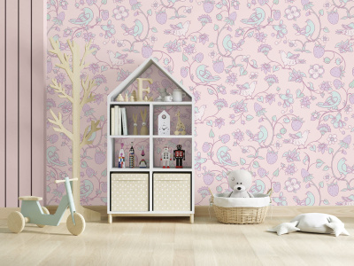 Эти очаровательные фотообои перенесут вашего малыша в волшебный мир природы, где среди изящных веточек и нежных цветочков прячутся крошечные ягодки и любопытные птички.