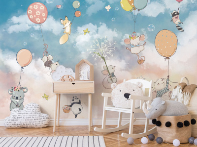 Эти очаровательные фотообои перенесут вашего малыша в мир добрых зверят, летящих на ярких воздушных шарах на нежном мятном фоне! Каждый персонаж прорисован с любовью, создавая уютную и сказочную атмосферу в детской комнате.