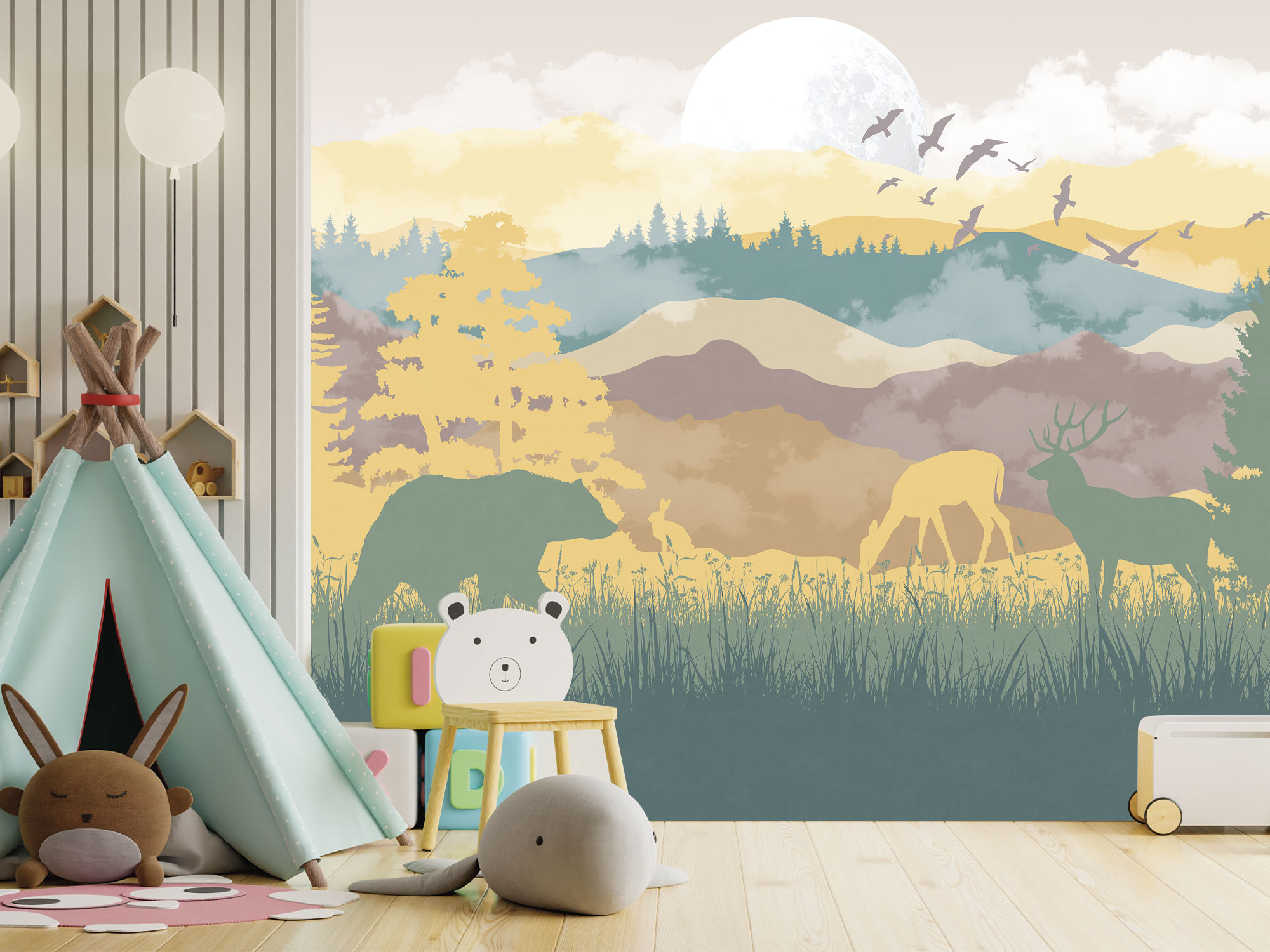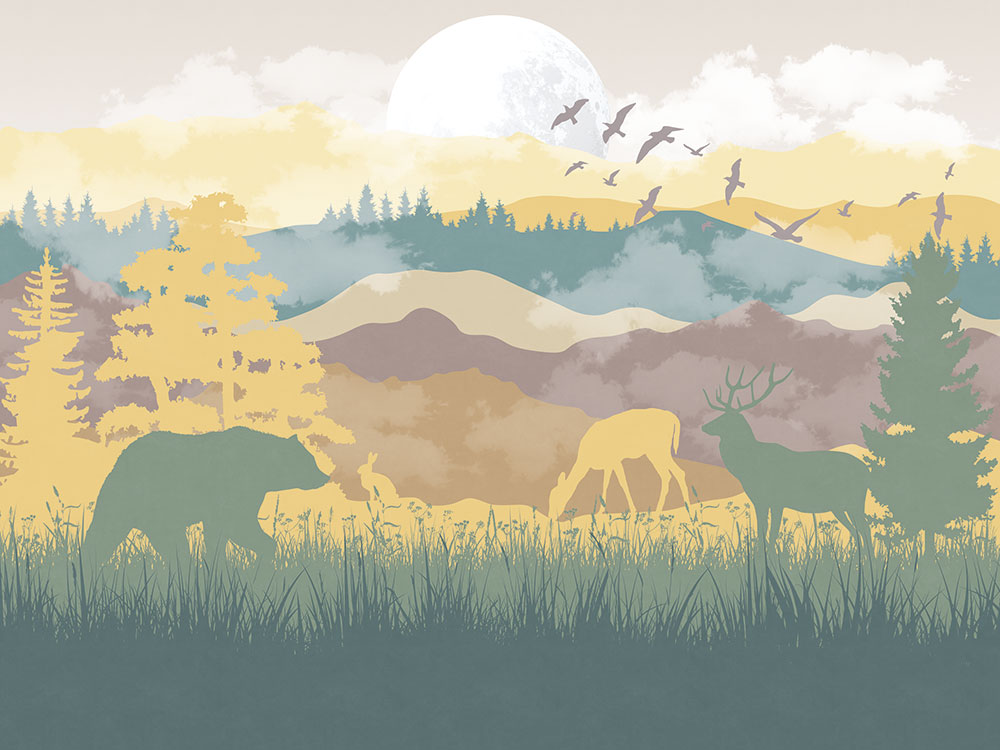 Погрузитесь в мир, где дикая природа оживает под лёгким прикосновением акварели. Эта уникальная работа сочетает в себе мощь медведя, грацию оленя и величавое спокойствие гор, создавая гармоничный пейзаж, который завораживает своей глубиной и нежностью.