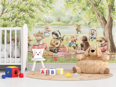 Детские фотообои «Лесной пикник» — яркое и красочное полотно, способное преобразить детскую комнату и создать атмосферу сказки и волшебства. На обоях изображены забавные животные, которые собрались на зелёной лужайке, чтобы насладиться весёлым пикником.