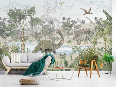 Детские фотообои «Раскраска с динозаврами» — это настоящие произведение искусства, которое превратит детскую комнату в мир юрского периода. На фотообоях изображены величественные динозавры, которые словно сошли со страниц учебника палеонтологии. Они гуляют по экзотической природе, окружённые густым лесом и яркими цветами.