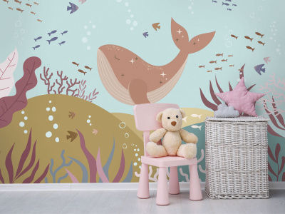 Дети будут в восхищении от этих красочных обоев, которые принесут им радость и вдохновение, и заставят мечтать о приключениях на морском дне.
