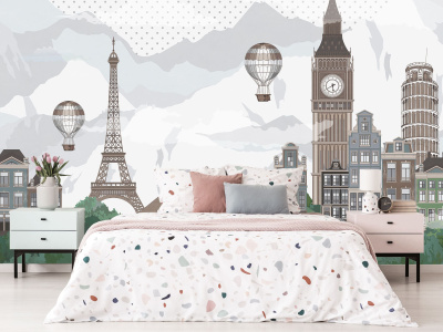 Детские фотообои с темным лесом и нарисованными достопримечательностями столиц мира превращают детскую комнату в удивительное путешествие по Лондону, Парижу, Риму и другим городам. Каждый день ваш ребенок будет отправляться в волшебное путешествие, вдохновляясь красотой и уникальностью каждого места. Создайте атмосферу приключений и открытий прямо у себя дома с этими удивительными фотообоями!