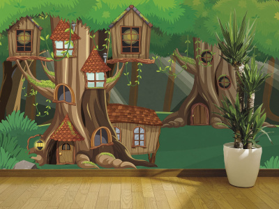 На этих удивительных детских фотообоях представлен красочный сказочный домик на дереве, окруженный пышным лесом в розово-бежевом. Маленький домик выглядит как из сказки, с крошечными оконцами и замашистой крышей. Вокруг него расположены огромные деревья, создающие атмосферу волшебства и уюта. Очаровательные обои привнесут в детскую комнату чувство приключения и волшебства, заставляя маленьких мечтателей погружаться в увлекательный мир фантазий и сказок.