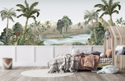 Фотообои «Тропический пейзаж» в светлом фоне создадут в комнате атмосферу экзотики и радости. На них изображён яркий и красочный тропический пейзаж, который перенесёт вас или вашего ребёнка в мир приключений и фантазий. Зелёные пальмы, раскидистые деревья, экзотические цветы и птицы — всё это сделает интерьер более живым и запоминающимся. Такие фотообои станут отличным украшением детской комнаты, создадут атмосферу тепла и уюта.