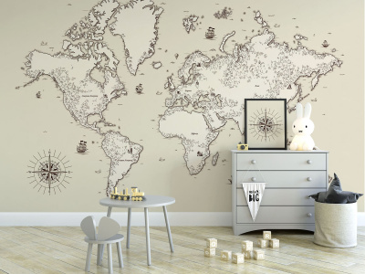 Детские фотообои с изображением «Карты путешествий» на светлом фоне. Эти обои станут ярким и увлекательным элементом декора детской комнаты, создавая атмосферу путешествий и открытий. Нежный голубой фон обоев создает спокойную и гармоничную атмосферу, не отвлекая внимание от карты и позволяя детям сосредоточиться на её изучении. Кроме того, такой фон идеально сочетается с любым стилем интерьера, что позволяет воплотить самые смелые дизайнерские идеи.