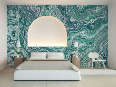 Сиреневые насыщенные цвета в сочетании с узорами в стиле малахита придают интерьеру особую изысканность и стиль. Фотообои с таким дизайном добавят оригинальности и элегантности любому помещению, создавая уютное и ультрамодное пространство.