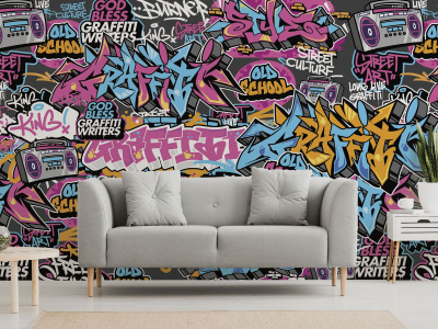 Фотообои с граффити на сером фоне можно описать как смелые и живые произведения уличного искусства, которые приносят атмосферу городской культуры и энергии в любое помещение. Насыщенные яркими цветами и запоминающимися рисунками, они переносят нас в мир улиц, где каждая стена становится холстом для творчества.