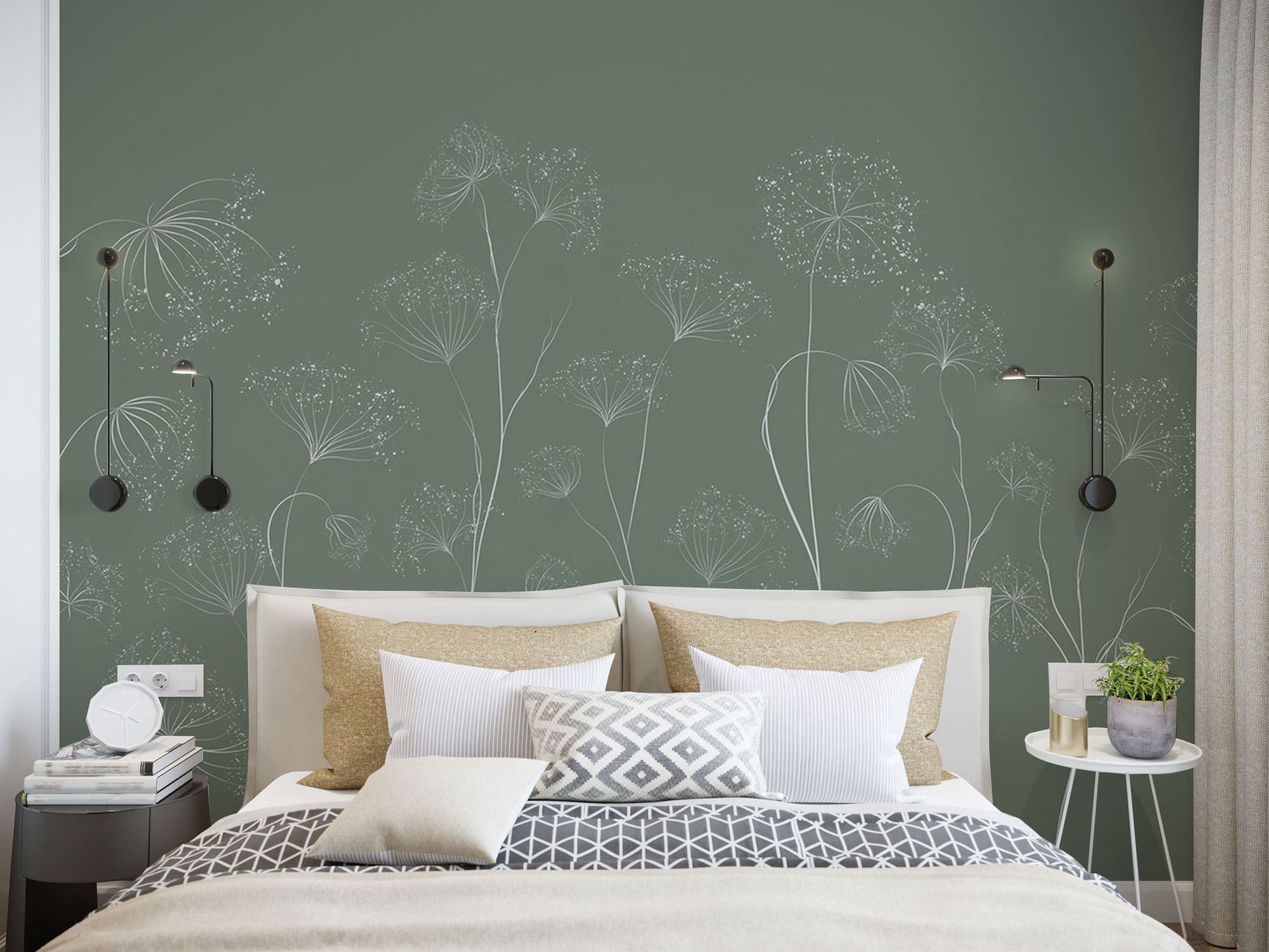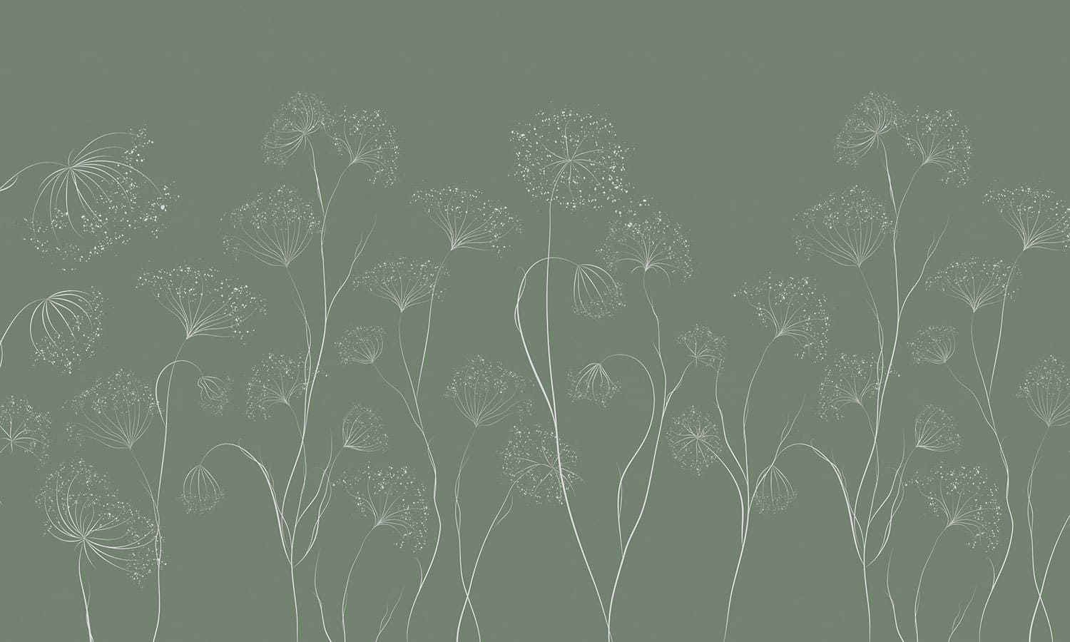Фотообои представляют собой очаровательное сочетание весеннего настроения и нежнейшей природной красоты. На темно-зеленом фоне, словно на холсте талантливого художника, линиями нарисованы одуванчики. Их легкий и воздушный вид создает ощущение весеннего бриза, наполняя пространство свежестью и радостью.
