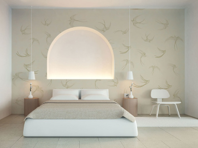Фотообои восхищают своим изысканным дизайном, где на мятном фоне танцуют изящные ласточки. Изящные линии и плавные движения птиц создают неповторимую атмосферу гармонии и умиротворения.