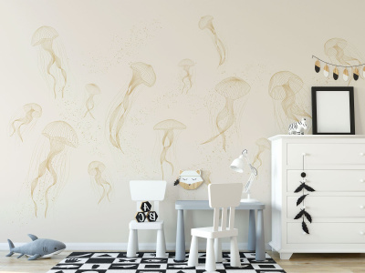 Фотообои представляют собой завораживающий вид ночного моря с темно-синим фоном, на котором плавно танцуют и колышутся медузы. Их движения кажутся невесомыми и лёгкими, словно они парят в воздухе. Благодаря линейному стилю изображения, фотообои создают ощущение глубины и пространства, позволяя зрителю полностью погрузиться в атмосферу подводного мира.