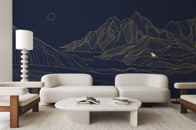 Фотообои выполнены в линейном стиле, на бежевом фоне изображены горы. Бежевый фон создаёт атмосферу легкости, а горы придают изображению мощь и величие. Линейный стиль подчёркивает красоту и гармонию природы, а также придаёт изображению элегантность и сдержанность.