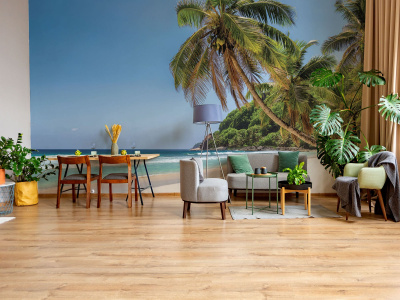 Фотообои с пейзажем тропического пляжа позволят превратить вашу комнату в уютное место, где можно отдохнуть и расслабиться. На них изображены яркие краски пальм, бирюзовая вода и золотистый песок, создающие атмосферу спокойствия и безмятежности.