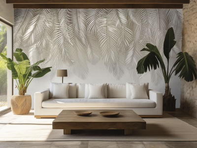 Фотообои с изображением пышных ярких пальмовых листьев поразят воображение своей экзотикой и яркостью. Они словно переносят в тропический рай, где игра света и тени создает ощущение глубины и объема, а насыщенные оттенки придают стенам живописный и запоминающийся вид.